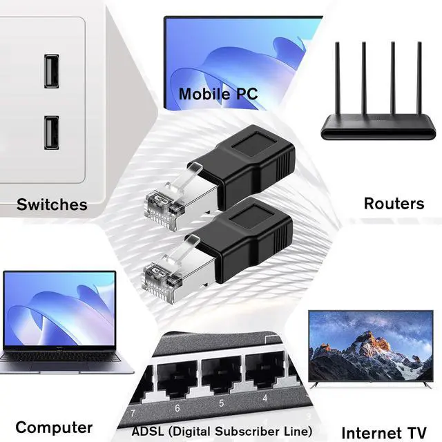 Use Function: Use the RJ45 male end to connect to the RJ45 network jack of the computer, and the other end of the USB 2.0 female end to connect to the USB port of the dialer or router, for data transmission and charging extensio