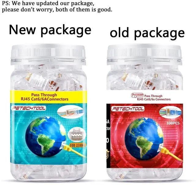 Package included: 100 pack RJ45 cat6/6a connectors for Awg23.