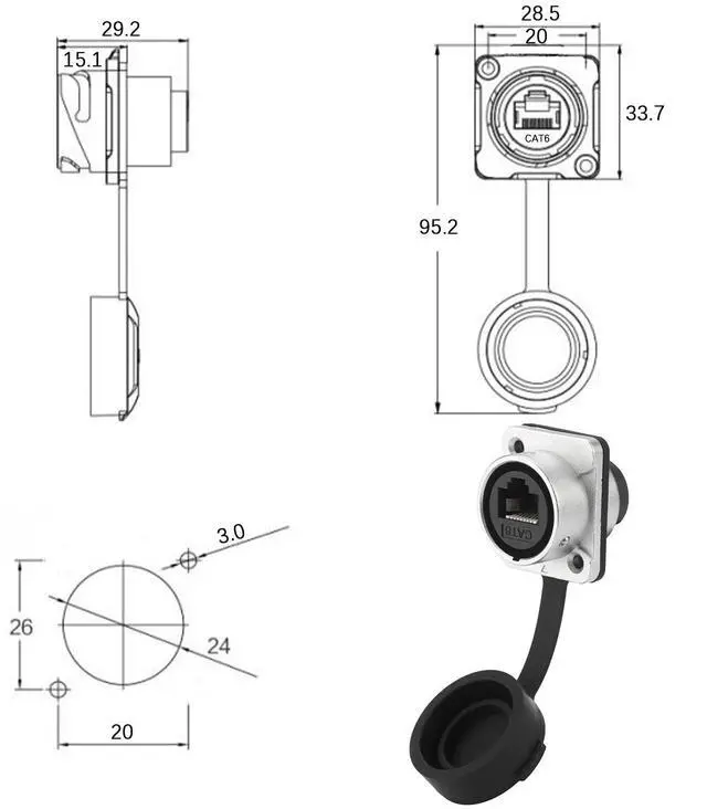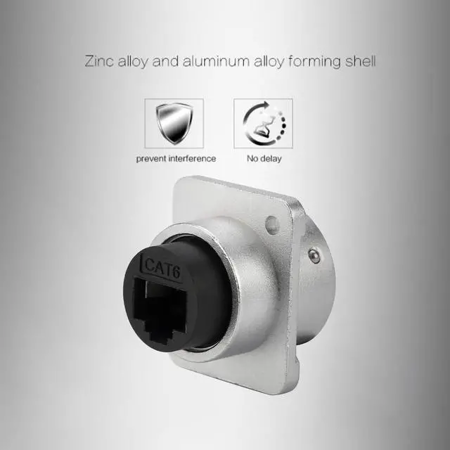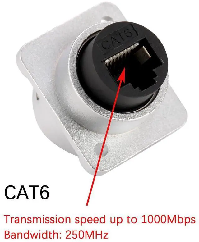 The RJ45 CAT6 panel mount connector is a type of Ethernet port that can be mounted onto a panel or enclosure, providing easy access for connecting network devices. It is designed to support data transfer rates up to 10 Gbps over twisted pair copper cabling, and is backward compatible with lower rated speeds such as 1000BASE-T and 100BASE-TX.