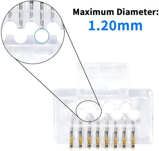 Superior Compatibility with 1.20mm Large Aperture Designed with a maximum wire OD of 1.20mm, these ends accommodate a wider range of Ethernet cables. They work perfectly with both solid and stranded UTP Cat6 cables (typically 23AWG to 24AWG), solving the common frustration of wires being too thick to fit into standard modular plugs.