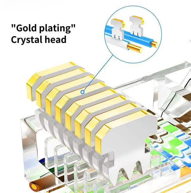 Ethernet Connector Optimized Signal Integrity & Conductivity Cat6 Pass Through Connectors. Featuring 3-prong gold-plated contacts, these connectors pierce the wire insulation deeply to ensure a tighter, more secure bond with the copper core. This advanced design enhances conductivity, minimizes signal loss, and provides stable, high-speed data transmission while remaining resistant to corrosion and oxidation over long-term use.
