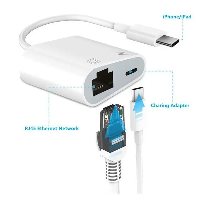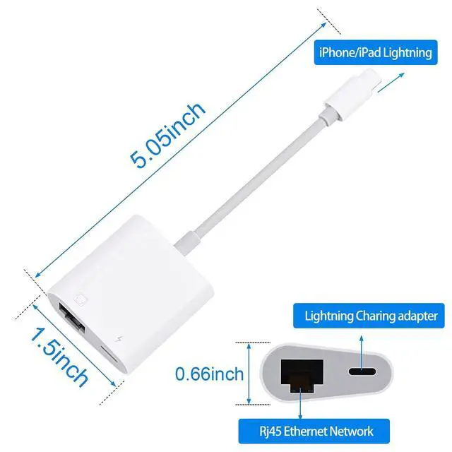 This lightning to ethernet adpater + charge is compact and lightweight. It is so portable which can be carried anywhere, perfect for the occasion of business traveling, education, entertainments, etc.