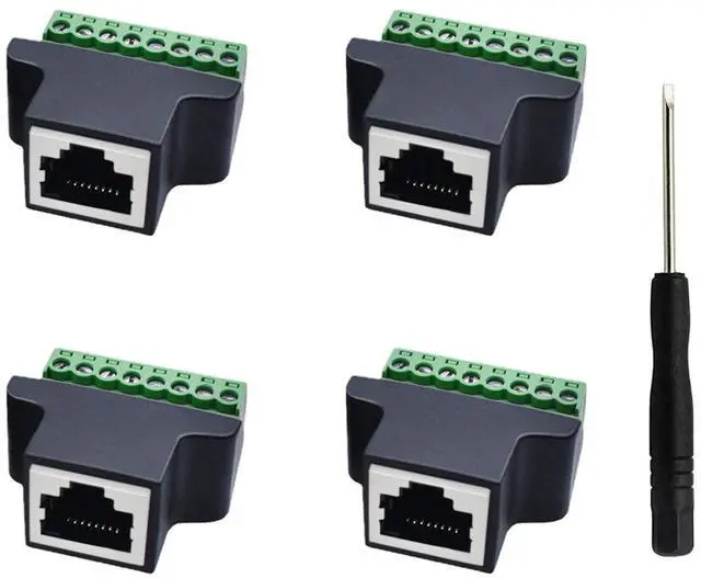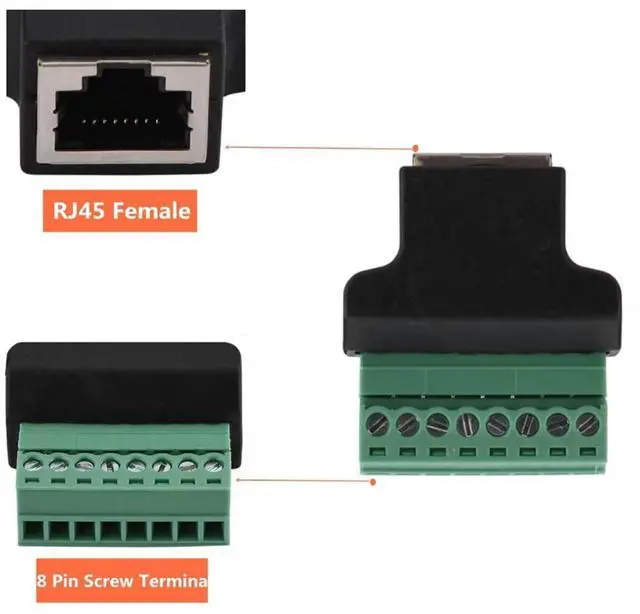 Upgrade your networking setup with these versatile RJ45 Female to 8 Pin Screw Terminal adapters. Designed for seamless connectivity, these adapters allow you to connect RJ45 cables to devices with screw terminals, eliminating the need for complex wiring. Compatible with Cat5, Cat6, and Cat7 networks, these adapters ensure reliable data transmission for your CCTV, DVR, and other networking applications. Crafted with durable materials, these adapters offer a secure and stable connection, ensuring long-lasting performance. With a pack of 4, you can easily expand your network across multiple devices. Simplify your installations and enhance your networking capabilities with these convenient RJ45 to screw terminal adapters.