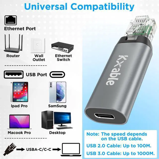 New Idea: The unique idea of RJ45 male to USB-C adapter allows you to connect to a network port using RJ45, and easily access the Internet through USB C to C or A to C cable. Using a USB cable is more user-friendly and convenient than an Ethernet cable. Compatible with USB 4.0 /3.1 / 3.0 /2.0 and thunderbolt 3/4 cables.