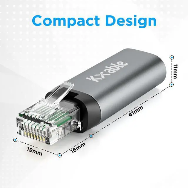 RJ45, Laptop, 0.009 kilograms, 1.397 L x 6.096 W x 11.811 H centimeters, KXUC-RJ45-AD-1PK, Chrome, Grey, 1