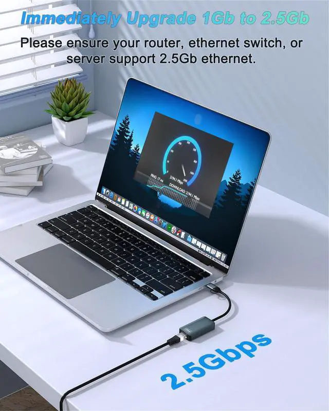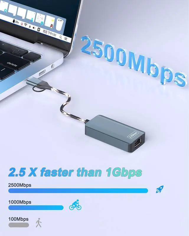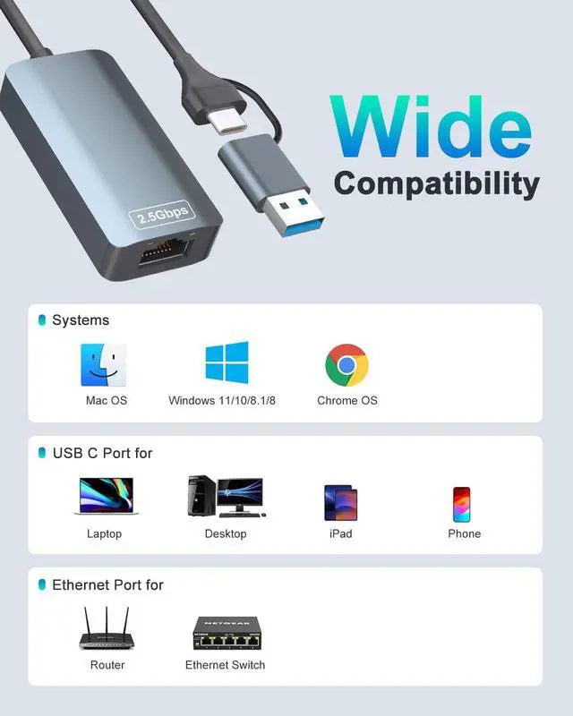 Exploring the New Era of 2.5Gb: The 2-in-1 Dual Functionality usb c to ethernet adapter supports a internet speed of up to 2.5Gb and enables your devices to run at full speed. And are also backward compatible with 1000M/100M/10Mbps. Enjoy unbelievably fast downloads with NAS, fluent streaming, immersive gaming.