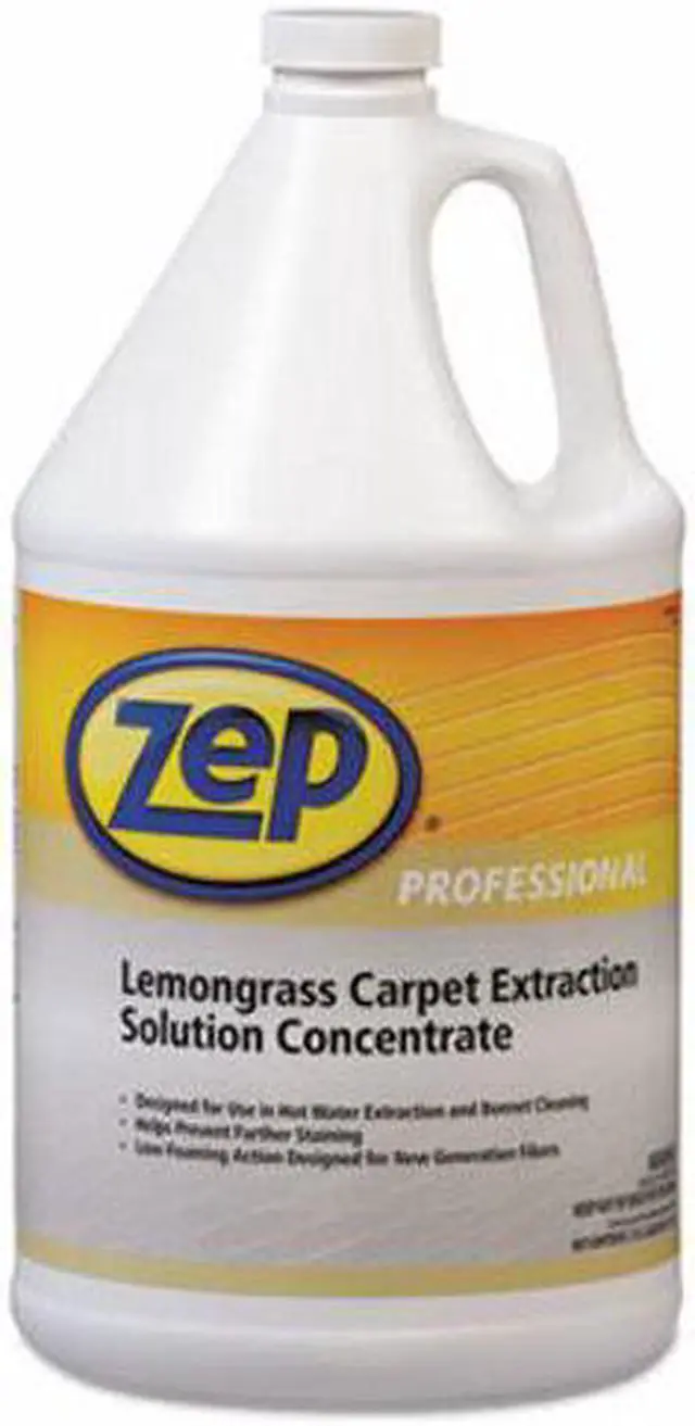 Designed to work best in hot water extraction equipment, this environmentally preferred concentrate easily removes soil and helps protect carpet from future staining. Its safe for stain-resistant treated carpets and leaves behind a light lemongrass fragrance. Application: Carpet/Upholstery Cleaner; Applicable Material: Natural Textiles; Synthetic Textiles; Carpet; Upholstery; Dirt Types: Grease; Grime; Oil-Based Soil; Organic Matter; Spills; Water-Based Soil; Scent: Lemongrass. Includes four per case.