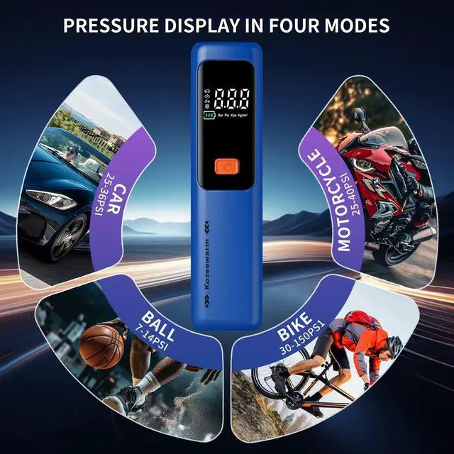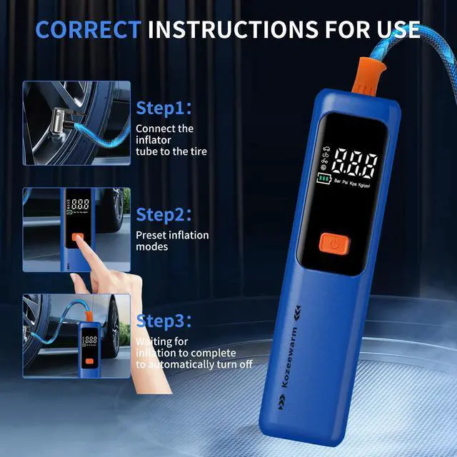 • CORDLESS & PORTABLE DESIGN Compact and lightweight, this cordless tire inflator fits easily in your car, backpack, or tool kit. With built-in rechargeable batteries, it ensures true portability for on-the-go inflationideal for cars, bikes, and outdoor adventures.