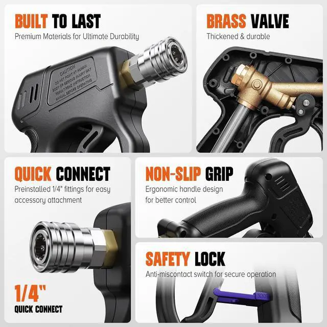 - Gifts for Car Guys -- This high-pressure water gun is super handy for cleaning cars, rooftops, windows, sidewalks, and more. It's a perfect gift for dads, moms, brothers, farmers, car enthusiasts, or anyone who loves a clean ride.Heads up: This car wash water gun doesnt work with regular garden hoses or faucetsmake sure youve got the right water pressure and connectors before using