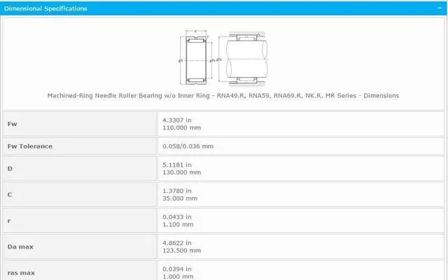 • NTN RNA4919R Needle Roller Bearing 110x130x35mm
