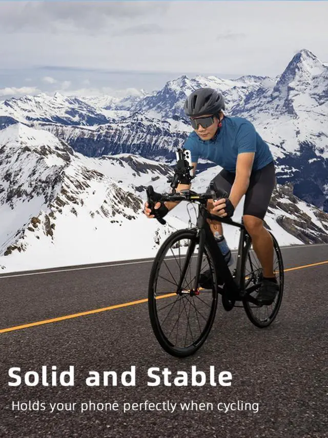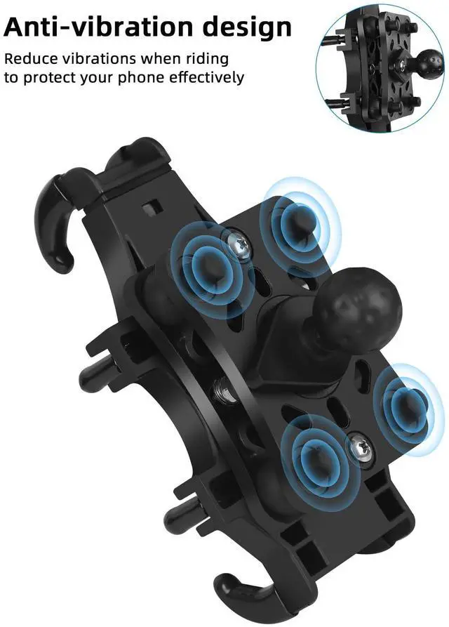 One hand operation with top 2 strong spring ,360°rotation ATV cell phone holder, 8 clamps arround your phone,silicone pad Protection your phone from cratch, U-bolt base secure design,ensure the safety of the mobile phone in high-speed cycling or on a bumpy road