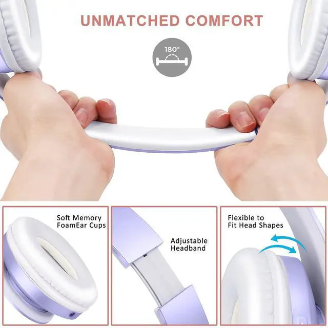 ZIHNIC Bluetooth Headphones Over-Ear, Foldable Wireless and Wired Stereo Headset Micro SD/TF, FM for Cell Phone,PC,Soft Earmuffs &Light Weight for Prolonged Wearing (Purple)