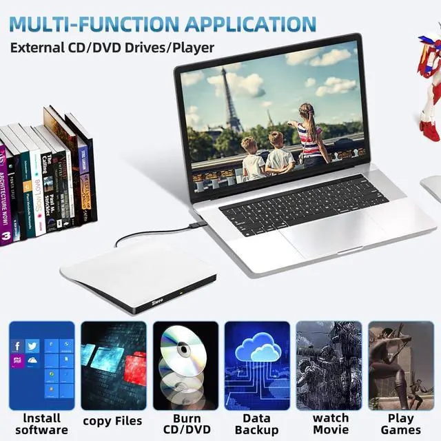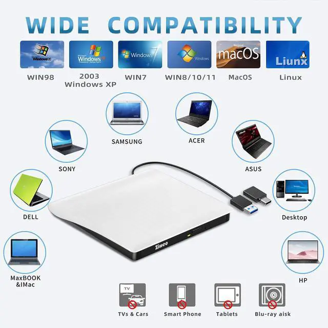 4.This portable CD/DVD drive can't be used with TV, car, smartphone.