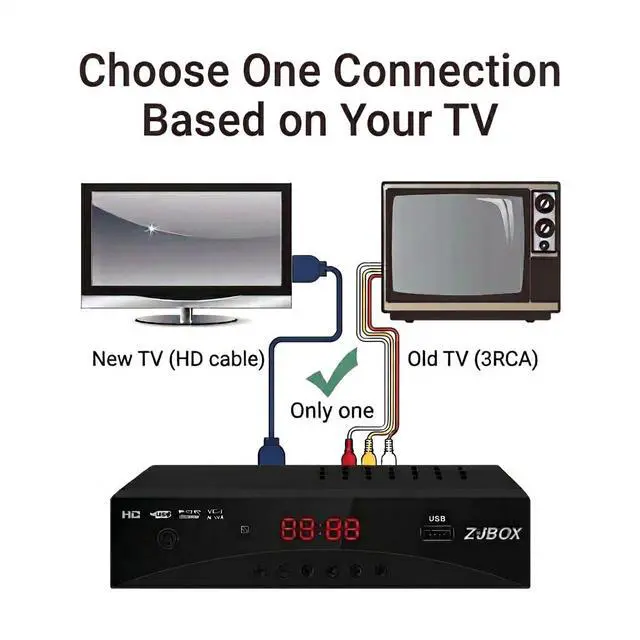 - ZJBOX ATSC digital TV converter box receives over-the-air ATSC digital TV broadcast to your analog TV