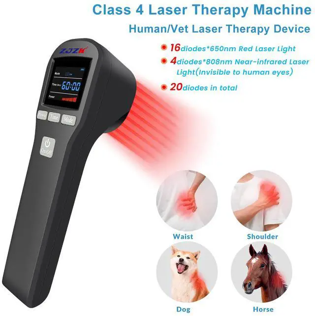 ZJZK Cold Laser Therapy Device for Muscle & Joint, 4x808nm+16x650nm, Pain Relief, Accelerate Healing, Home Light Therapy for Human and Animals Black
