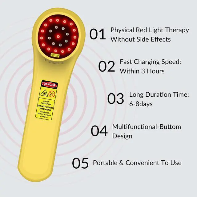 • Portable Red Light Wand: Perfect for home and travel use. Recommended for 1-2 daily sessions over 4-6 weeks. Use near the body and wear eye protection.