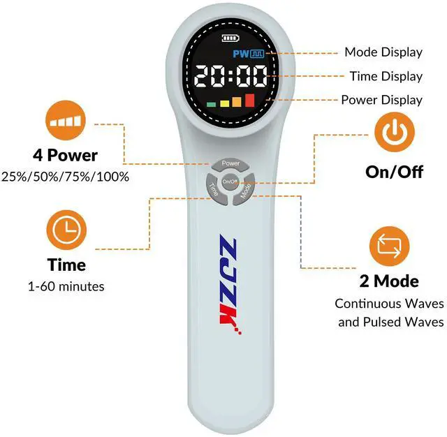 Time 1-60 minutes Adjustable; power:25% 50% 75% 100% four levels adjustable; Mode:CW-continuous wave and PW-pulsed wave at 10Hz adjustable to meet your different needs. With built-in 3600 mAh lithium battery, each full charge lasts up to 6-8 days, you can also use the laser physical therapy while charging. Small size and handheld, specially design for household use, you also can use red laser for healing anytime, anywhere to relieve your pet's pain and discomfort and keep your pet healthy.