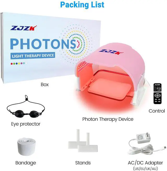 The mask is designed for both professional and home use, featuring a detachable, durable build and adjustable power, mode, and timer settings. Suitable for face, neck, and body, it offers spa-quality treatment at your convenience. Package includes mask, adapter, controller, pillow, stands, glasses, and user manual.
