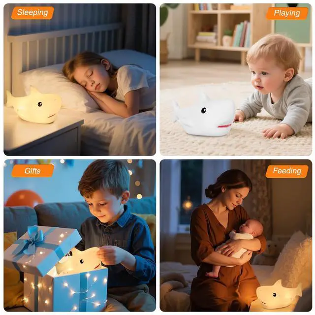 - Do you want to sleep with it every night? Lighting up sharks can help children who are afraid of darkness sleep well at night. When children are sleeping, the lights won't disturb them. Can adjust brightness to varying degrees to accompany children