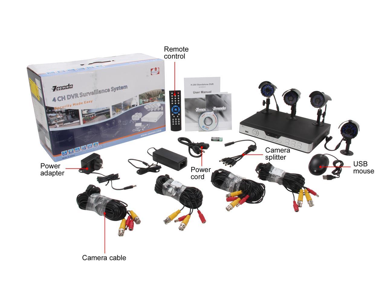 Zmodo KDA4-NARQZ4ZN-5G 4Ch DVR with 500GB HDD & 4 Sony CCD Cam Kit