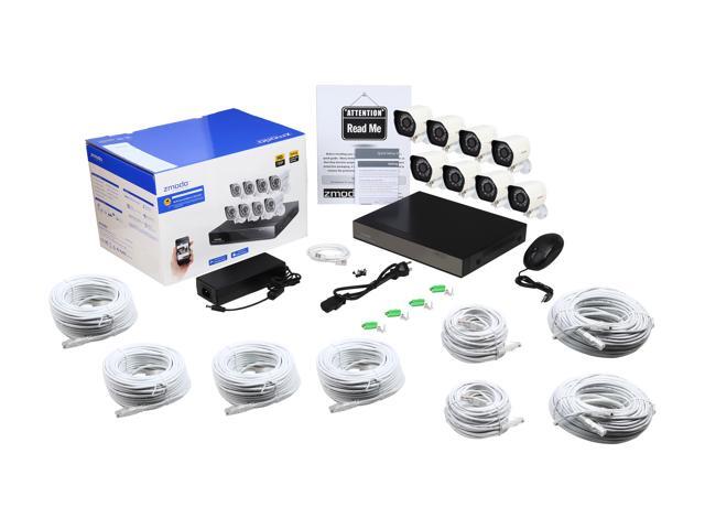 Zmodo ZM-SS718-1TB 8 CH NVR + 8 HD 720P Day/Night Outdoor sPoE IP Camera w/ 1TB HDD Smartphone Scan QR Code Quick Remote Access