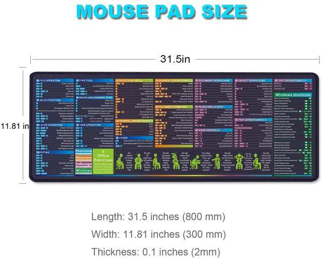 Large mouse pad: Full desktop mouse pad measures 31.5 x 11.8 inches