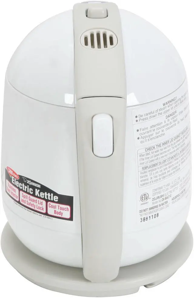 The ZOJIRUSHI electric kettle is a new species of electric kettle with extra safety features. Its unique lid design and safety lock protects against accidental spilling. It quickly boils up to 34 oz. of water and automatically shuts off, protecting against boil-dry. The body is insulated for a cool-touch operation. It also features a durable all stainless steel interior with concealed heating element and a cordless operation so the kettle can be taken to the table without dragging the power cord. Additional features include a wide opening for easy filling and cleaning, and convenient cord storage on base.