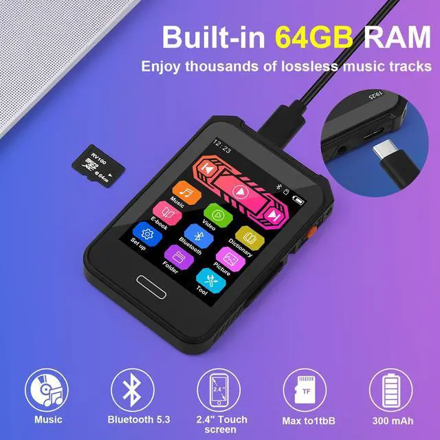 64GB Mp3 Player Bluetooth 5.3 with 2.4" Full Touch Screen