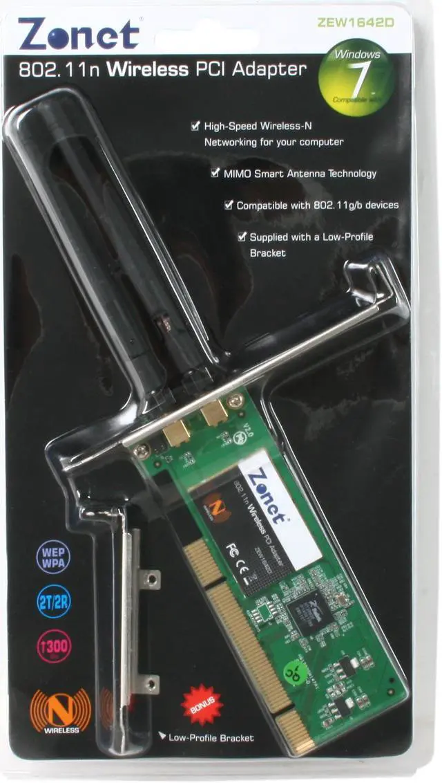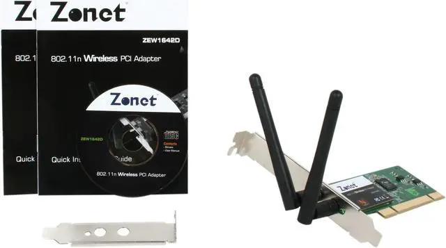 Zonet ZEW1642D Wireless Adapter w/Low-Profile Bracket IEEE 802.11b/g, IEEE 802.11n Draft 2.0 PCI Up to 300Mbps Wireless Data Rates