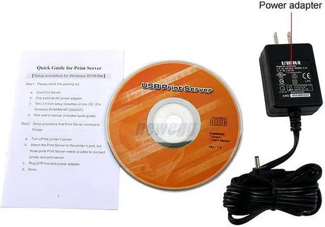 | Package Contents | ZPS1000 Resource Disk Power Adapter Quick Guide for Print Server |