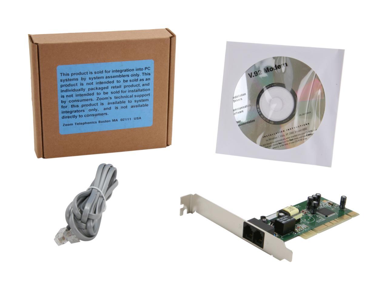 Zoom 3031-00-12EF V.92 PCI Soft Modem PCI Bus (Plug & Play) V.92 and earlier ITU standards