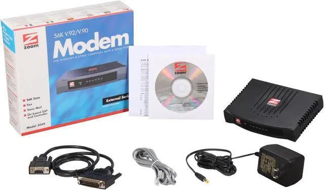 The Zoom/Modem V.92 External Model 3049 is a high performance 56K fax modem that plugs into the serial port of a computer using Windows, Macintosh, LINUX or UNIX operating systems. It also works with any device that can provide RS-232 signaling for Transmit, Receive, Ground. The 3049 is ideal for use with point-of-sale devices and dumb terminals which do not provide DTE signaling. Robust power handling features including protection against brownouts and power glitches make this modem suitable for unattended remote applications.