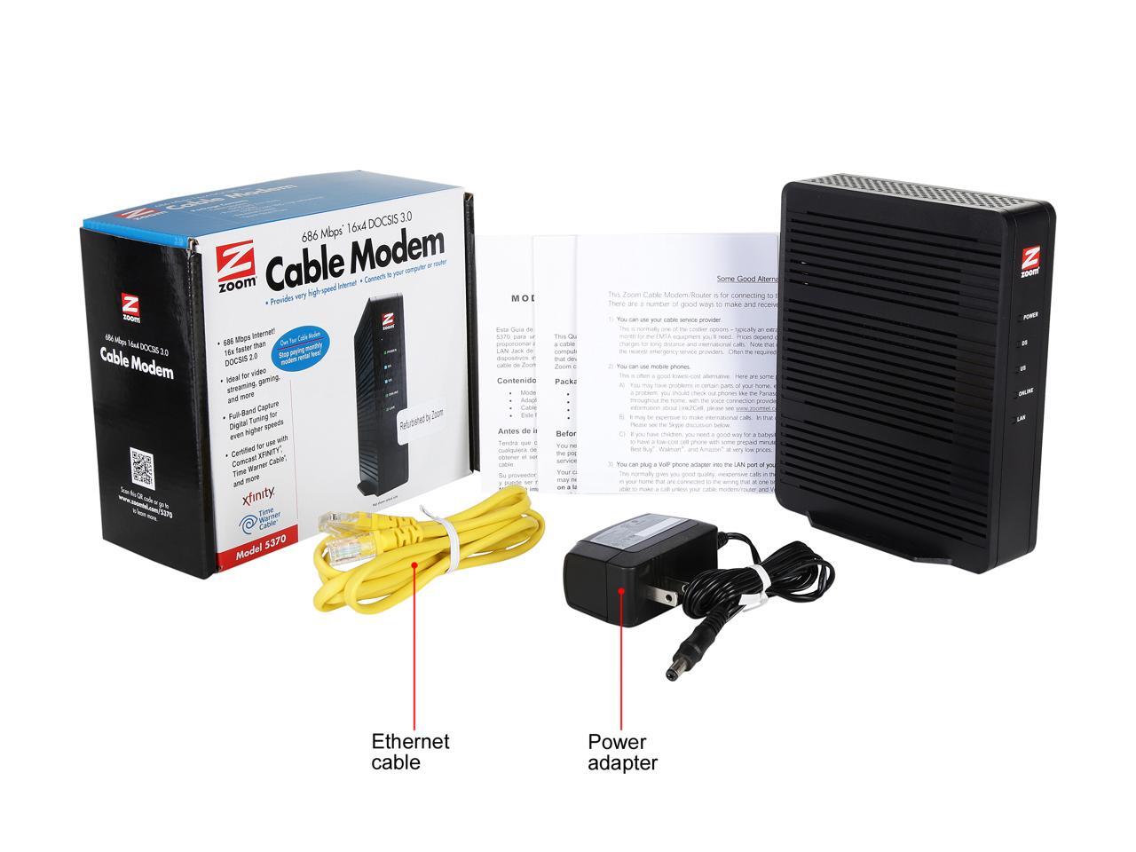 Zoom 16x4 Cable Modem, 686 Mbps DOCSIS 3.0, Model 5370, Certified by Comcast XFINITY, Time Warner Cable and Other Service Providers