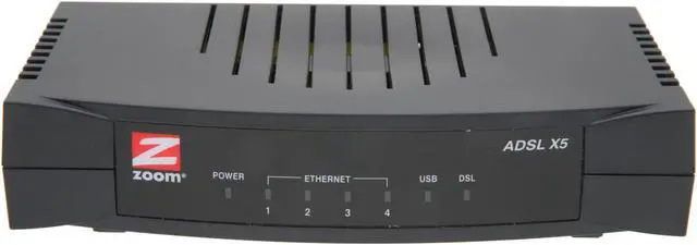 The 5654 ADSL X5 Router integrates a full-rate ADSL 2/2+ modem, four-port 10/100 Ethernet switch and a USB port into a single cost-effective product. Concurrent Ethernet and USB connections are supported for flexibility in operating with a range of devices. Up to five computers can be plugged into the X5 directly and each can enjoy simultaneous independent Internet access.