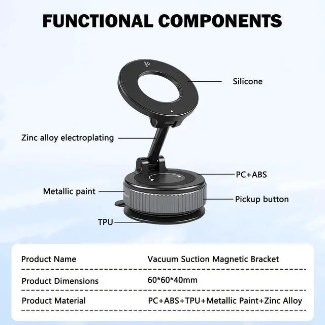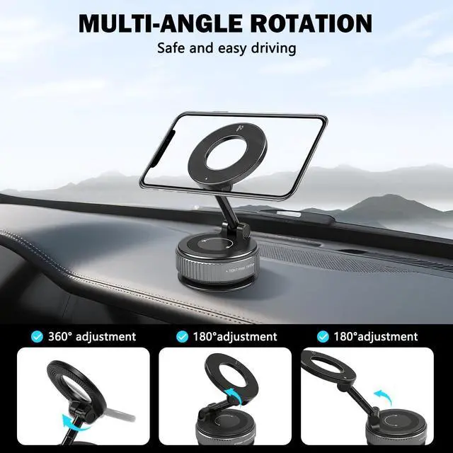 Transform your driving experience with this sleek and practical magnetic car phone holder. Available in sophisticated black or clean white, its round base design offers both style and stability. The powerful magnetic mount securely holds your phone in place while allowing for quick attachment and removal. The holder features an ON/OFF switch for convenient operation and a streamlined circular top plate that complements any vehicle interior. Perfect for navigation, hands-free calls, or music control, this mount helps you maintain focus on the road while keeping your device within easy view. The compact size doesn't obstruct your vision, and the strong magnetic force ensures your phone stays firmly in position even on bumpy roads. Installation is straightforward, and the adjustable angle lets you find the perfect viewing position. Compatible with most smartphone models, this car mount combines functionality with modern design to enhance your daily commute.