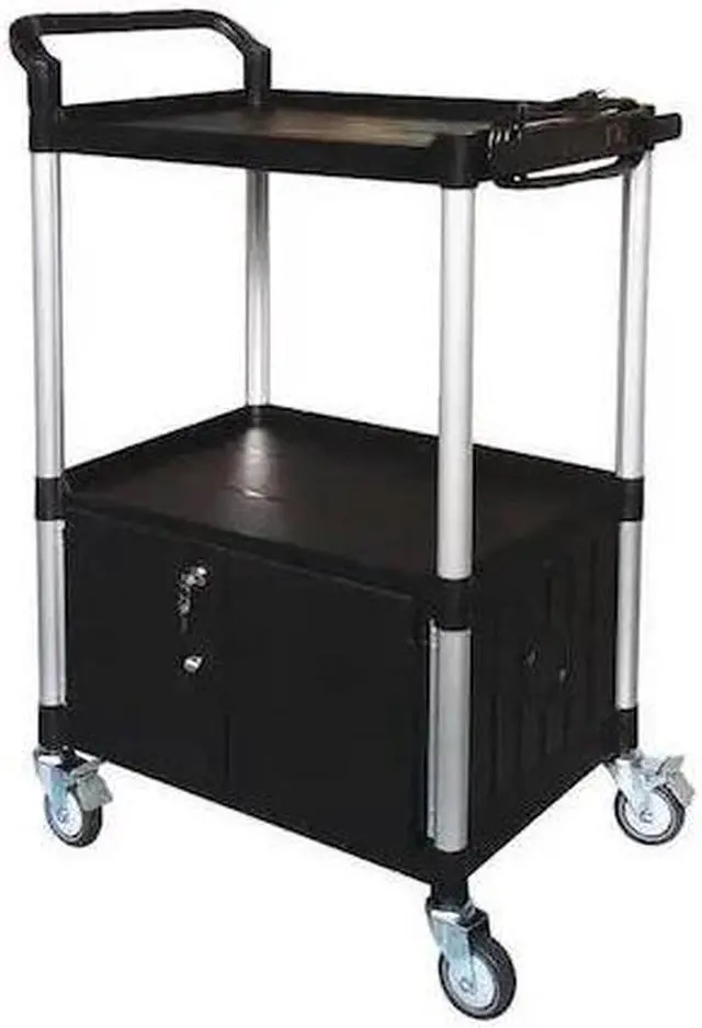 California Proposition 65: This product contains a chemical known to the State of California to cause birth defects or other reproductive harm. Media Cart with Cabinet, Overall Width 19 3/8 in, Overall Length 32 5/8 in, Minimum Overall Height 47 1/4 in, Material Glass Fiber, Polypropylene, Number of Shelves 3, Caster Type (2) Lockable Swivel, (2) Swivel, Weight Capacity 400 lb, Standards Not Applicable, Caster Diameter 4 in, Shelf Weight Capacity 135 lb, Cabinet Depth 17 1/8 in, Cabinet Height 10 7/8 in, Cabinet Width 26 3/8 in, Finish Anodized, Maximum Overall Height 47 1/4 in, Number of Cabinets 1, Number of Keys 2. This item has been restricted from sale in the following state (s): []