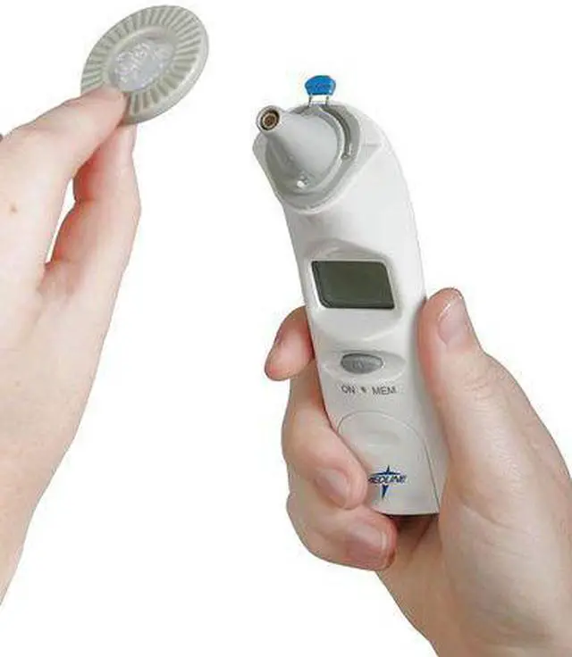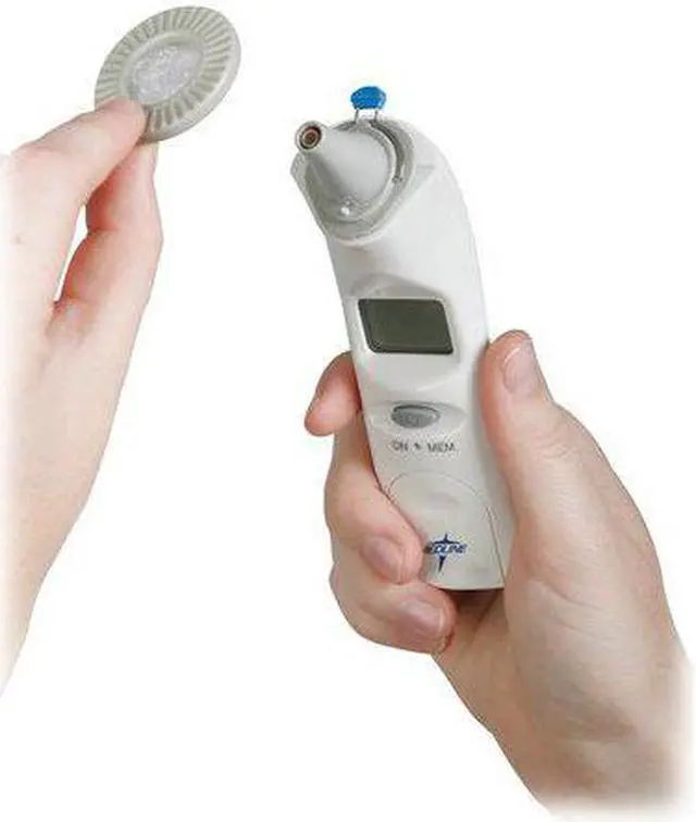 Digital Thermometer, Thermometer Location Ear, Measurement Type Fahrenheit; Metric, Color White, Length 2 547/5000 in, Width 2 in, Height 4 in, For Use With CR2032 Battery, Includes (100) Probe Covers