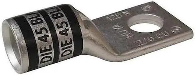 California Proposition 65: This product contains a chemical known to the State of California to cause birth defects or other reproductive harm. One-Hole Lug Compression Connector, Barrel Size Short, Color Code Black, Die Code 45, Tongue Angle Straight, Tongue Width 0.83 in, For Conductor Material Copper, For Stud Size 1/4 in, For Stranded Copper Wire Size - Minimum 2/0 AWG, For Stranded Copper Wire Size - Maximum 2/0 AWG, Inspection Hole Yes, Material Copper, Maximum Operating Temperature 300 Degrees F, Maximum Voltage 600 V AC, Termination Style Crimp, Seam Style Seamless, Standards CSA Certified, UL Listed, Number of Holes 1. This item has been restricted from sale in the following state (s): []