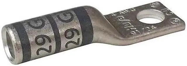 California Proposition 65: This product contains a chemical known to the State of California to cause birth defects or other reproductive harm. One-Hole Lug Compression Connector, Barrel Size Long, Color Code Gray, Die Code 29, Tongue Angle Straight, Tongue Width 0.67 in, For Conductor Material Copper, For Stud Size 3/8 in, For Stranded Copper Wire Size - Minimum 4 AWG, For Stranded Copper Wire Size - Maximum 4 AWG, Inspection Hole No, Material Copper, Maximum Operating Temperature 300 Degrees F, Maximum Voltage 600 V AC, Termination Style Crimp, Seam Style Seamless, Standards CSA Certified, UL Listed, Number of Holes 1. This item has been restricted from sale in the following state (s): []
