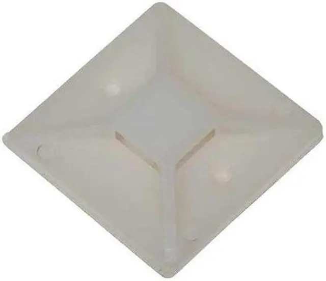 Cable Tie Mounting Pad, Number of Entries 4, Slot Width 0.54 in, Slot Height 0.54 in, Adhesive Mount, Material Nylon 6/6, Color Natural, Length 1.5 in, Width 1.5 in, Height 0.3 in, 1.5 in L x 1.5 in W x 0.3 in H, Temp. Range -25 Degrees to 185 Degrees F, Flame Retardant No, Metal Detectable No, For Use With Cable Ties from 18 To 51 lb Tensile Strength, Standards RoHS Compliant, Package Quantity 100. This item has been restricted from sale in the following state (s): []