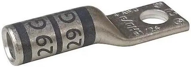 California Proposition 65: This product contains a chemical known to the State of California to cause birth defects or other reproductive harm. One-Hole Lug Compression Connector, Barrel Size Long, Color Code Gray, Die Code 29, Tongue Angle Straight, Tongue Width 0.52 in, For Conductor Material Copper, For Stud Size 1/4 in, For Stranded Copper Wire Size - Minimum 4 AWG, For Stranded Copper Wire Size - Maximum 4 AWG, Inspection Hole No, Material Copper, Maximum Operating Temperature 300 Degrees F, Maximum Voltage 600 V AC, Termination Style Crimp, Seam Style Seamless, Standards CSA Certified, UL Listed, Number of Holes 1. This item has been restricted from sale in the following state (s): []