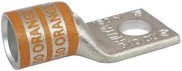 California Proposition 65: This product contains a chemical known to the State of California to cause birth defects or other reproductive harm. One-Hole Lug Compression Connector, Barrel Size Short, Color Code Orange, Die Code 50, Tongue Angle Straight, Tongue Width 0.92 in, For Conductor Material Copper, For Stud Size 1/2 in, For Stranded Copper Wire Size - Minimum 3/0 AWG, For Stranded Copper Wire Size - Maximum 3/0 AWG, Inspection Hole Yes, Material Copper, Maximum Operating Temperature 300 Degrees F, Maximum Voltage 600 V AC, Termination Style Crimp, Seam Style Seamless, Standards CSA Certified, UL Listed, Number of Holes 1