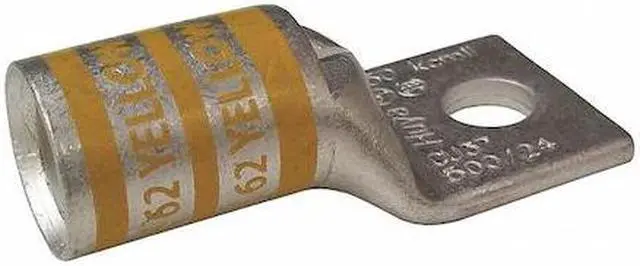 California Proposition 65: This product contains a chemical known to the State of California to cause birth defects or other reproductive harm. One-Hole Lug Compression Connector, Barrel Size Short, Color Code Yellow, Die Code 62, Tongue Angle Straight, Tongue Width 1.13 in, For Conductor Material Copper, For Stud Size 1/4 in, For Stranded Copper Wire Size - Minimum 250 kcmil, For Stranded Copper Wire Size - Maximum 250 kcmil, Inspection Hole Yes, Material Copper, Maximum Operating Temperature 300 Degrees F, Maximum Voltage 600 V AC, Termination Style Crimp, Seam Style Seamless, Standards CSA Certified, UL Listed, Number of Holes 1