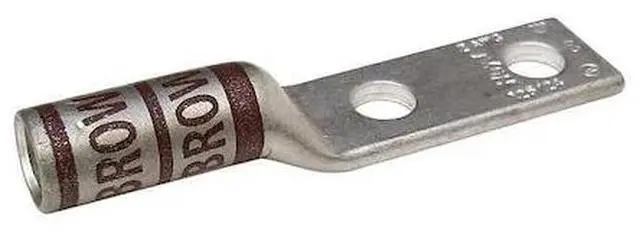 California Proposition 65: This product contains a chemical known to the State of California to cause birth defects or other reproductive harm. Two-Hole Lug Compression Connector, Barrel Size Long, Color Code Brown, Die Code 33, Tongue Angle Straight, Tongue Width 0.6 in, For Conductor Material Copper, For Stud Size #10, For Stranded Copper Wire Size - Minimum 2 AWG, For Stranded Copper Wire Size - Maximum 2 AWG, Inspection Hole Yes, Hole Center to Center 0.625 in, Material Copper, Maximum Operating Temperature 300 Degrees F, Maximum Voltage 600 V AC, Termination Style Crimp, Seam Style Seamless, Standards CSA Certified, UL Listed