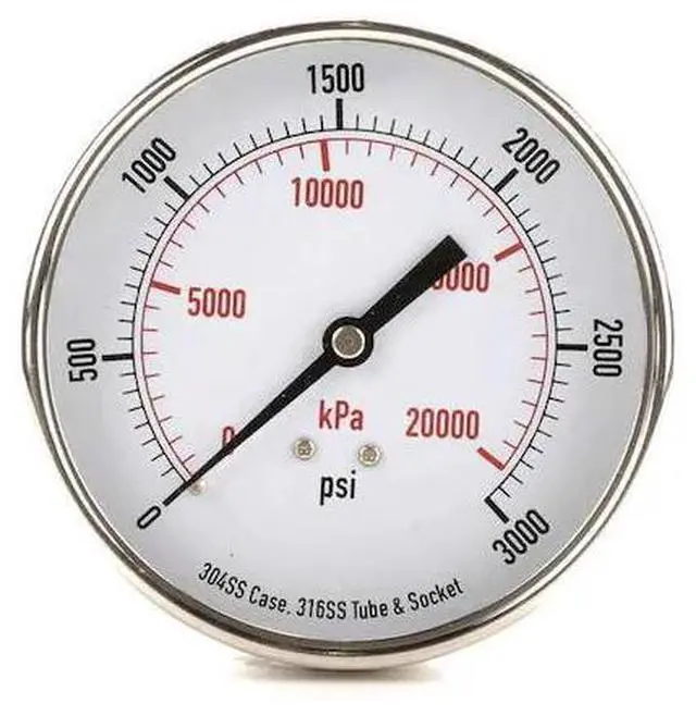 California Proposition 65: This product contains a chemical known to the State of California to cause birth defects or other reproductive harm. Commercial Pressure Gauge, Nominal Dial Size 3 1/2 in, Accuracy +/-3-2-3 Percent, Gauge Case Material 304 Stainless Steel, Process Connection Type NPT, Process Connection Gender Male, Lens Material Acrylic, Process Connection Size 1/4 in, Field Fillable No, Process Connection Location Center Back, Case Color Silver, IP/NEMA Rating Not Rated, Primary Pressure Range 0 to 3, 000, Dry Dampening Feature None, Vibration Resistance None, Dial Color White, Pressure Gauge Type Commercial Pressure Gauge. This item has been restricted from sale in the following state (s): []