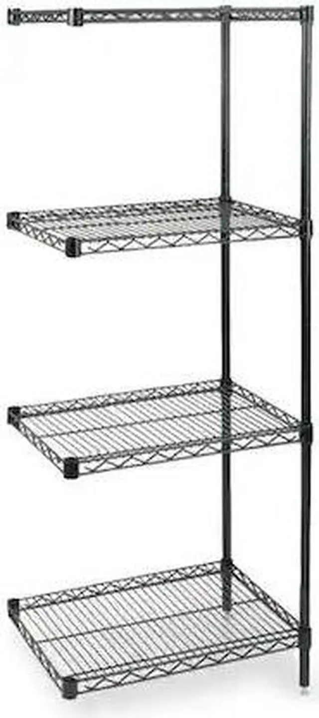 California Proposition 65: This product contains a chemical known to the State of California to cause birth defects or other reproductive harm. Wire Shelving Unit, Adjustability Adjustable, Black Color, Powder Coated, Includes (2) Posts, (8) S Hooks, Load Capacity per Shelf 800 lb, Material Steel, Overall Depth 18 in, Overall Height 63 in, Overall Width 48 in, Dry, Wet Recommended Environments, Shelf Adjustment Increments 1 in, Standards NSF, 2, 400 lb, Shelf Configuration Add-On, Shelf Adjustment Type Split Sleeve, Number of Shelves 4. This item has been restricted from sale in the following state (s): []