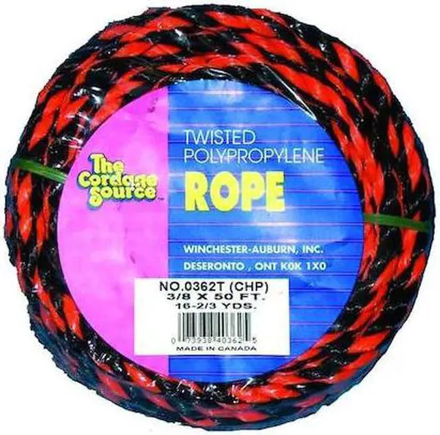General Purpose Utility Rope, Rope Type Dynamic, Breaking Strength 1, 951 lbf, Working Load Limit 430 lb, Rope Construction Twisted, Diameter 3/8 in, Overall Length 50 ft, Core Material Polypropylene, Cover Material Not Applicable, Elongation @ 10 Percent Minimum Breaking Strength Not Applicable, Product Type General Purpose Utility Rope, Lifting Capability Not for Lifting, Rope Format Ball, Rope Strand Count 3, Core Type Hollow Core, Core Strand Count 0, End Type Plain. This item has been restricted from sale in the following state (s): []