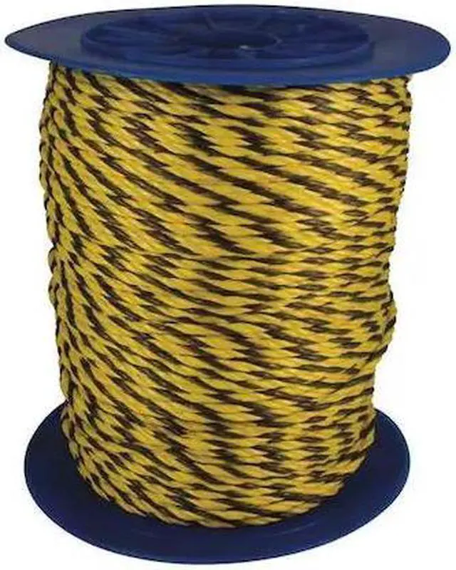 Rope Item General Utility Rope, Rope Sub-Category All Purpose, Rope Diameter 5/16 in, Rope Material Polypropylene, Rope Strand Count 3, Rope Length 1, 200 ft, Working Load Limit 146 lb, Rope Core Strand Count 0, Rope Construction Twisted, Tensile Strength 1, 462 lb, Rope Core No, Black/Yellow, Package Type Reel. This item has been restricted from sale in the following state (s): []