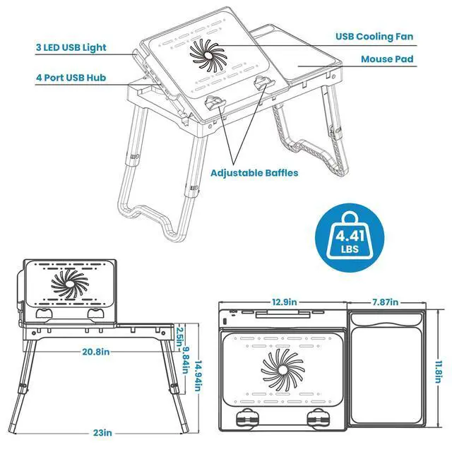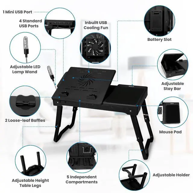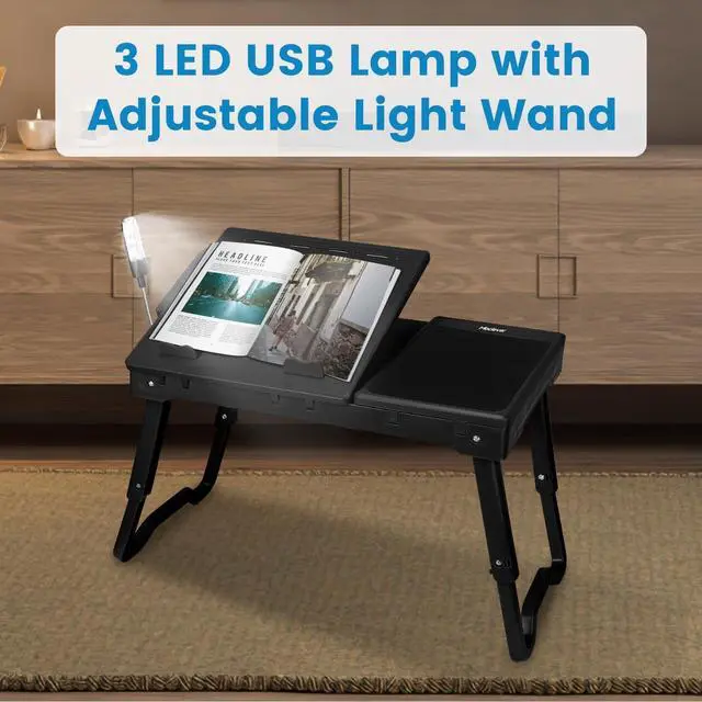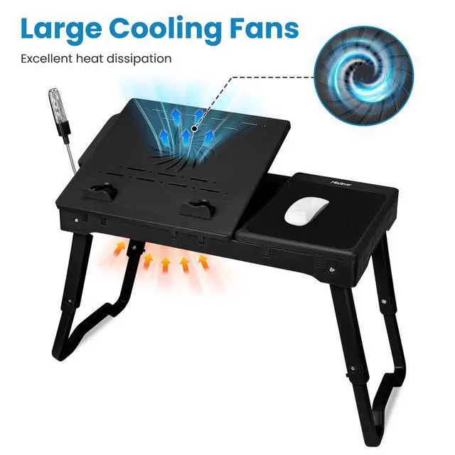 This laptop table comes with a inbuilt perforated cooling fan to protect laptop from overheating and prolong the service life of your laptop