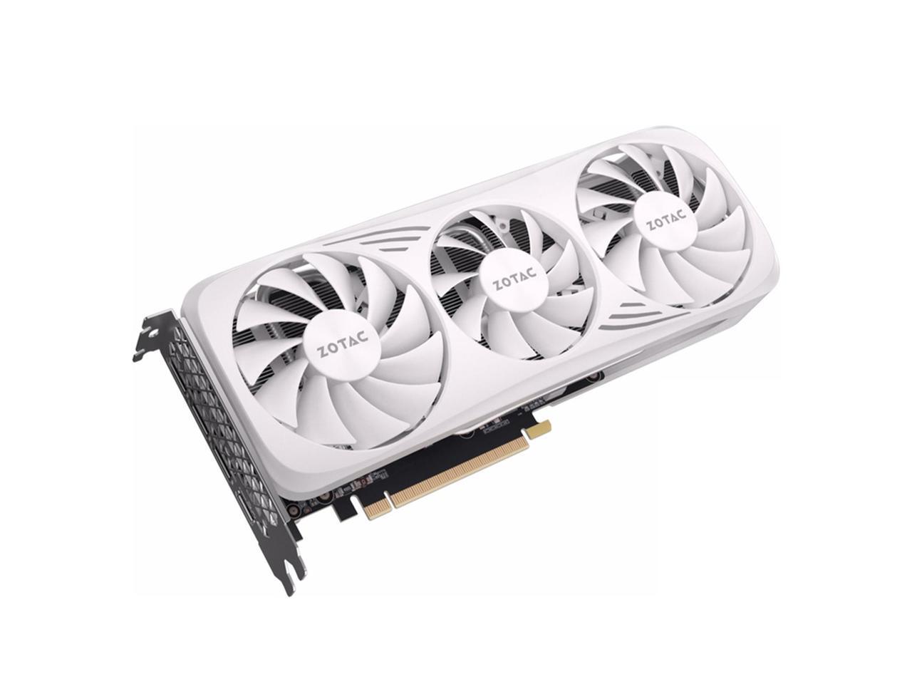 ZOTAC GeForce 4070-12GD6X Moon White OC Graphics Card, Gaming, AI Design, Video Editing, 3D Rendering, 3 x DP, 1 x HDMI, 12GB GDDR6X, 192-bit, Express 4.0 16x, 2490MHz, 21 Gbps